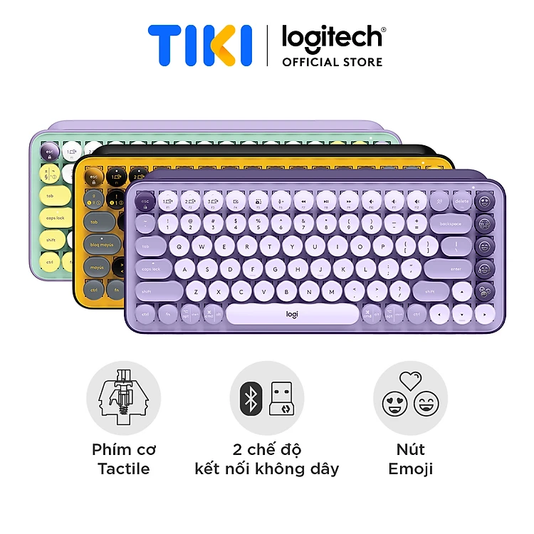 Bàn phím cơ không dây bluetooth | USB Logitech POP KEYS - với 8 phím emoji có thể điều chỉnh, switch tactile, kết nối 3 thiết bị - Hàng chính hãng