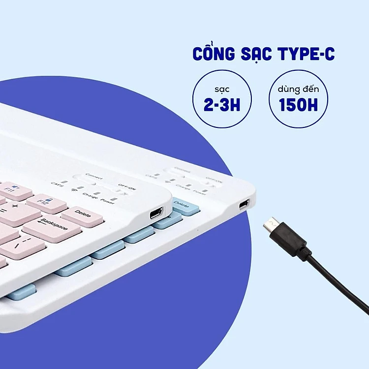 Bàn phím không dây Bluetooth mini dùng được cho IOS Android Windows thiết kế nhỏ gọn, không gây tiếng ồn
