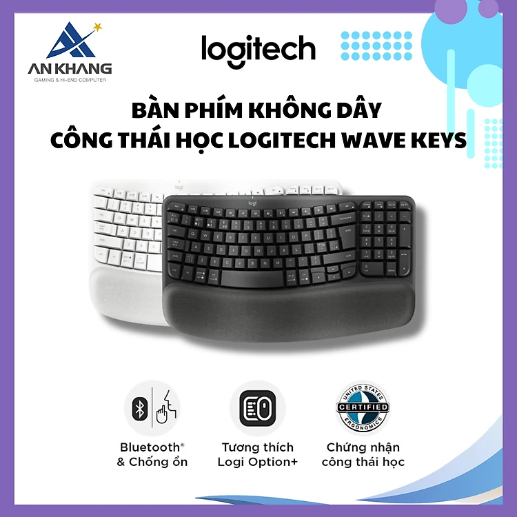 Bàn phím không dây công thái học Logitech Wave Keys - Kết nối Bluetooth, Gác tay, Windows, MacOs - Hàng Chính Hãng