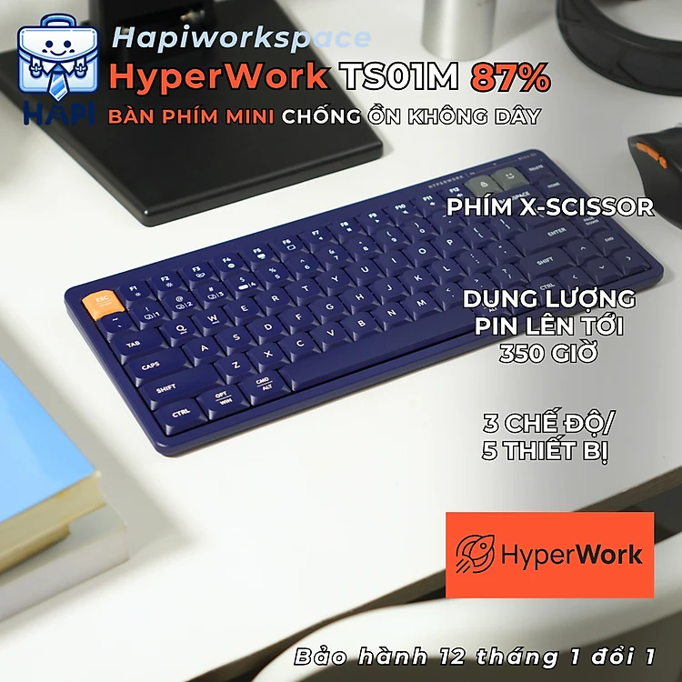 Bàn phím không dây hàng chính hãng HyperWork Silentkey Mini TS01M 75%