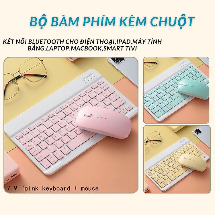 Bàn Phím Và Chuột Bluetooth Mini Siêu Mỏng GOIIOG 030 dùng cho ipad, điện thoại có đa dạng màu sắc cá tính VT (Giao Ngẫu Nhiên) - Hàng chính hãng