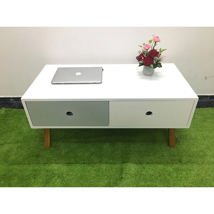 Bàn sofa hình hộp trắng có hộc kéo T919-1