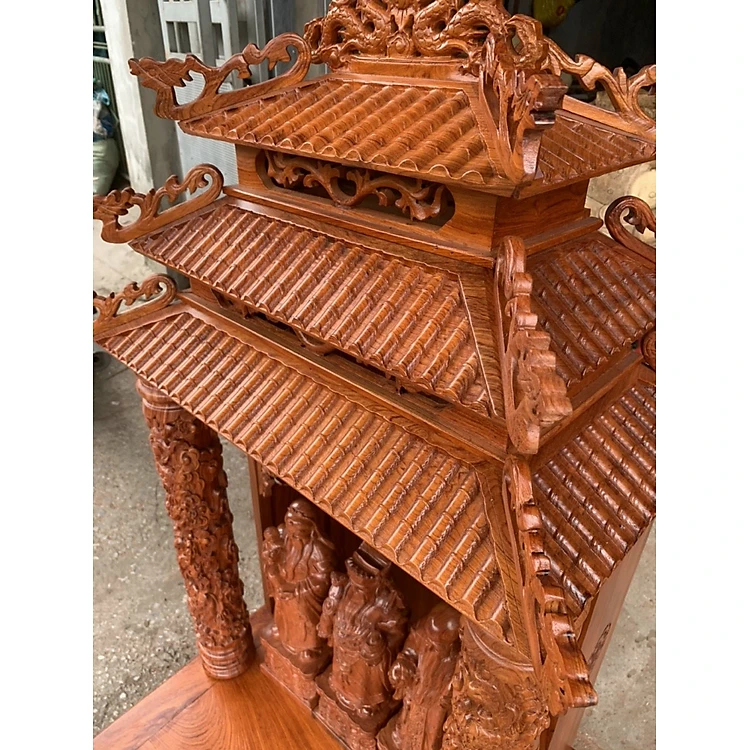 Bàn thờ ông địa ông thần tài bằng gỗ hương siêu víp kt 61×69cm