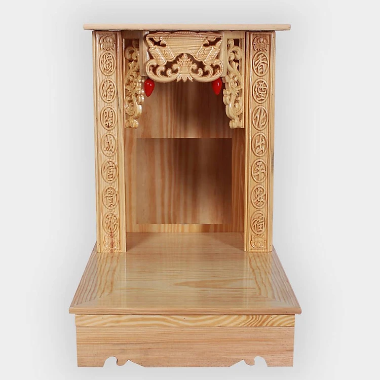 Ban thờ thần tài gỗ permu cạnh chạm khắc