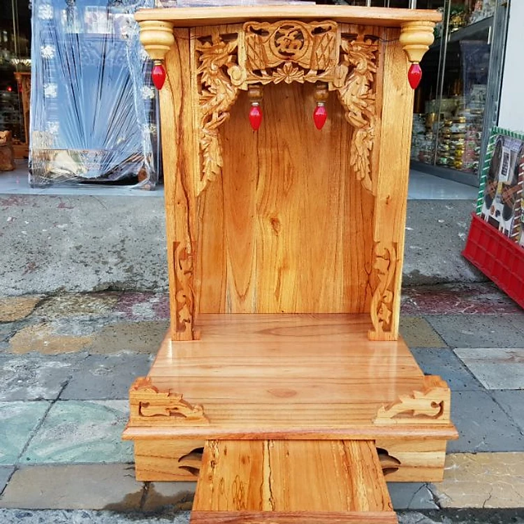 Bàn thờ thần tài ông địa gỗ xoan. Lọng
