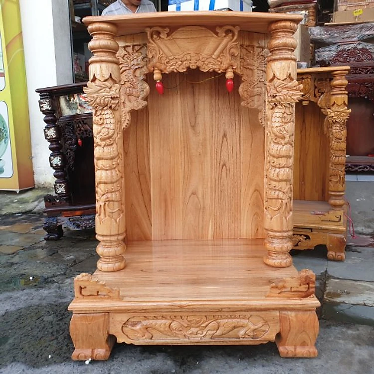 Bàn thờ thần tài ông địa gỗ xoan quỳ trụ