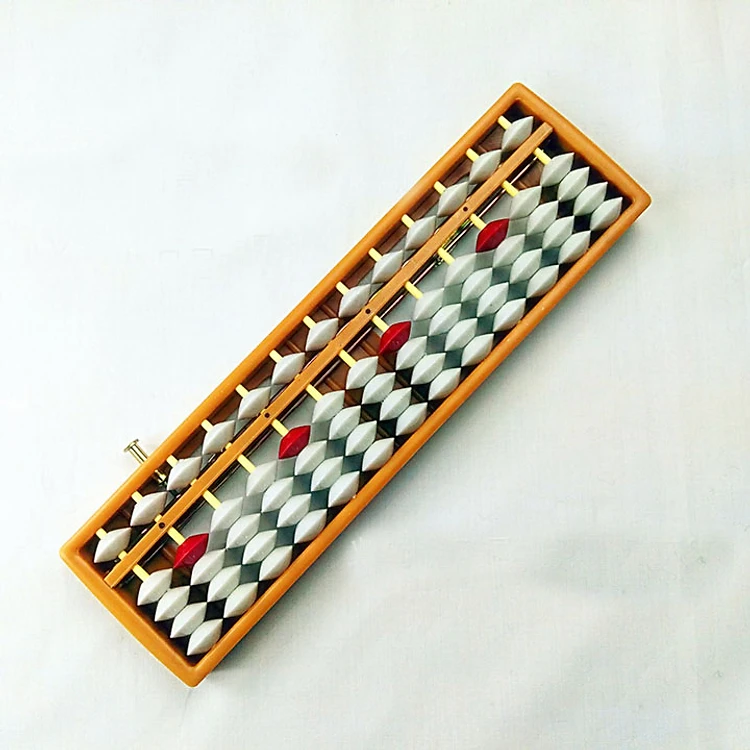 Bàn tính soroban sử chất liệu gỗ thân thiện môi trường gồm 13 cột dọc khác nhau, bàn phín có nút trở về 0