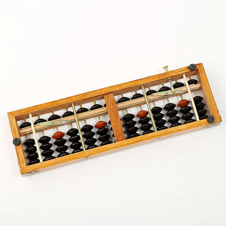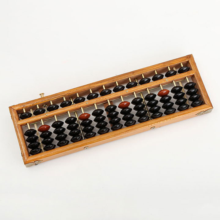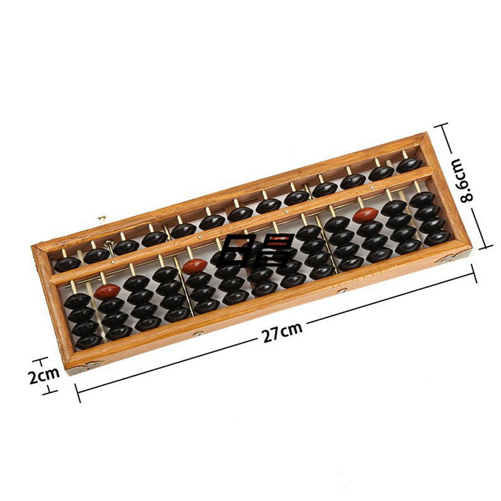 Bàn tính soroban sử chất liệu gỗ thân thiện môi trường gồm 13 cột dọc khác nhau, bàn phín có nút trở về