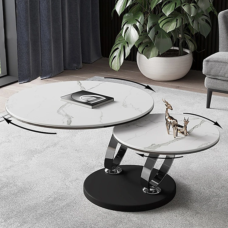 Bàn trà bàn sofa cặp đôi mặt đá phiến ( bàn to 80cm - mặt bàn nhỏ 50 cm ) xoay 360 độ chân khung inox mạ đế chân đen sang trọng TS GALAXY C-08E ở HCM