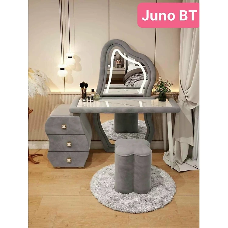 Bàn trang điểm BT Juno Sofa bọc da mặt kính gương led cảm ứng