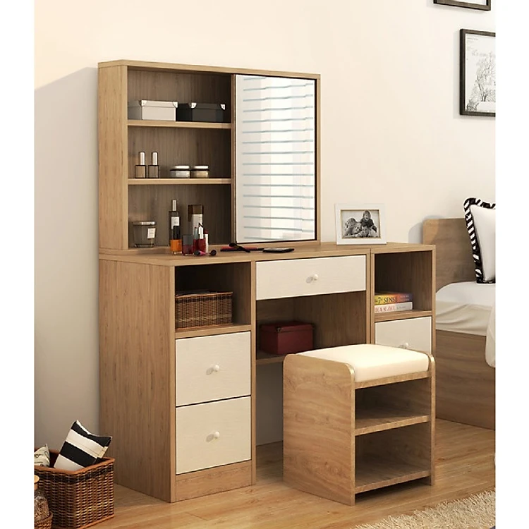 Bàn Trang Điểm Gỗ Cao Cấp Màu Vân Gỗ Kèm Ghế Trang Điểm Hiện Đại (BTD-15)