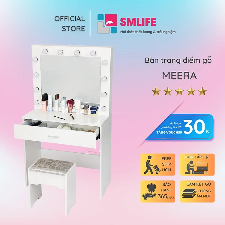 Bàn trang điểm có gương đèn LED SMLIFE Meera