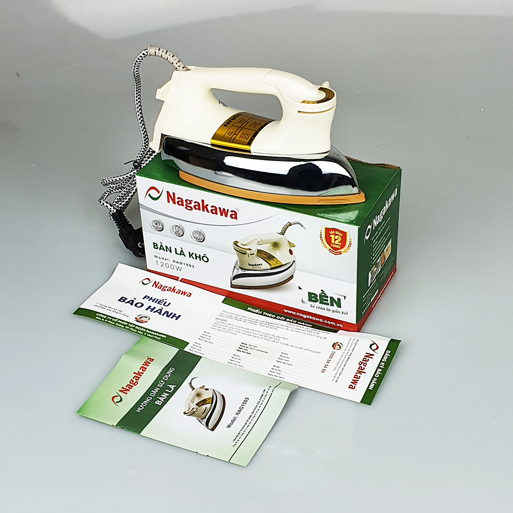 - Nagakawa thiết kế bàn ủi với công suất 1200W vừa đảm bảo khả năng phát nhiệt nhanh chóng vừa đảm bảo độ bền cho sản phẩm khi sử dụng thời gian dài