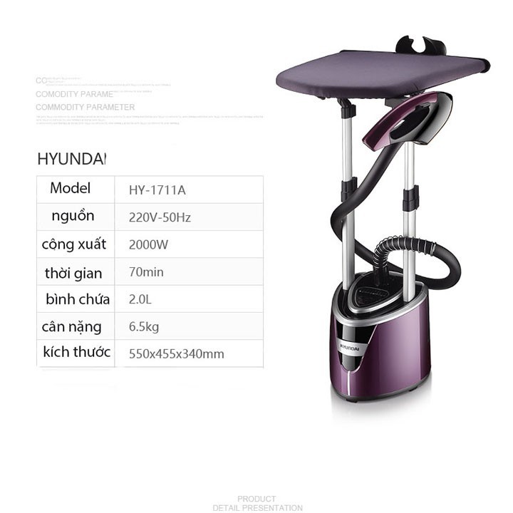 - Ngăn chứa nước có dung tích lớn 02L, đủ dùng cho 30 phút ủi bằng hơi nước và có thể tháo rời, dễ dàng thêm nước với lỗ châm nước lớn. Cực tích hợp có thể điều chỉnh để treo quần áo trong khi dùng bàn ủi và có thể thu gọn lại để cất giữ.