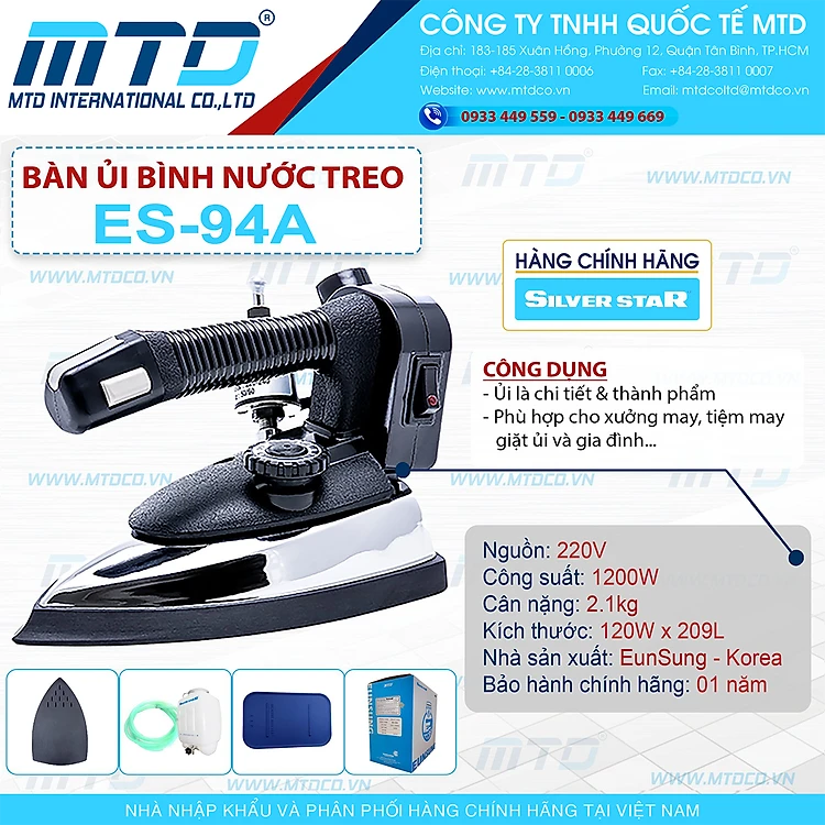 Bàn ủi hơi nước bình treo công nghiệp Silver Star ES-94A - Hàng Chính Hãng