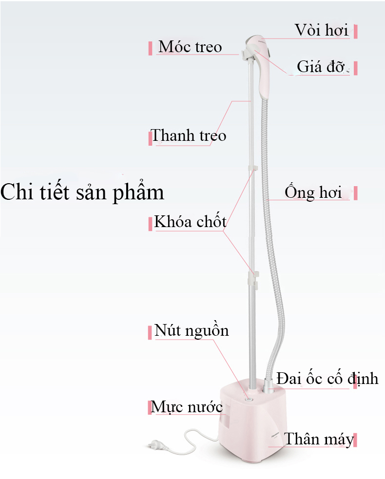 - Ngăn chứa nước có dung tích lớn 2L, đủ dùng cho 30 phút ủi bằng hơi nước và có thể tháo rời, dễ dàng thêm nước với lỗ châm nước lớn. Cực tích hợp có thể điều chỉnh để treo quần áo trong khi dùng bàn ủi và có thể thu gọn lại để cất giữ.