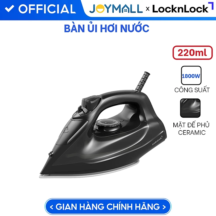 Bàn Ủi Hơi Nước LocknLock ENI334BLK 1800W 200ml, Hàng Chính Hãng, Mặt Đế Phủ Gốm Ceramic – JoyMall