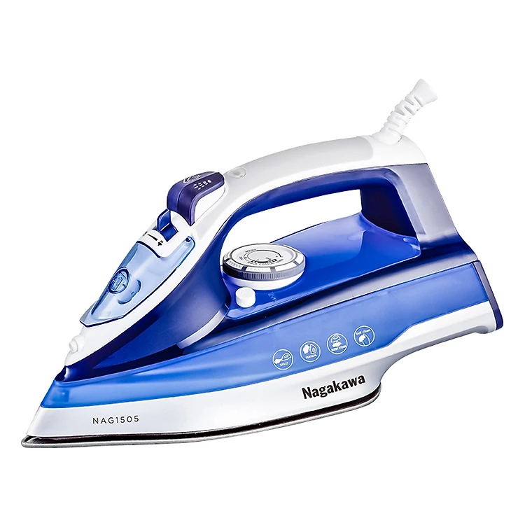 Bàn là hơi nước Nagakawa NAG1505 với thiết kế đầu bàn là mũi nhọn giúp dễ dàng là ủi mọi vị trí trên quần áo nhất là những chỗ khó là như cổ áo, gấu áo, nếp nhăn gần cúc áo, quần và vùng nhỏ hẹp khó ủi