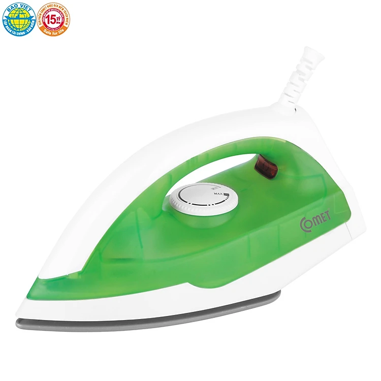 Bàn ủi khô Comet CM1129 có công suất hoạt động từ 1200W đến 1400W, rút ngắn tối đa thời gian là ủi quần áo. Mặt bàn ủi được phủ lớp Teflon chống dính và chống trầy, không chỉ giúp bàn ủi trượt mượt mà trên mọi bề mặt vải, ủi nhanh hơn, giữ sạch và không làm xước quần áo do mặt đế không bị dính bẩn, dễ lau chùi. Bàn ủi khô Comet CM1129 trang bị núm xoay điều chỉnh nhiệt độ và đèn báo, khi bàn ủi đạt nhiệt độ điều chỉnh, đèn báo sẽ tự động ngắt, giúp bạn tiết kiệm điện năng.