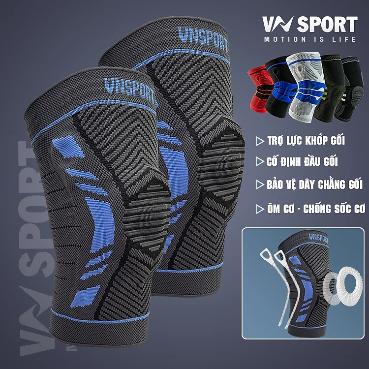 Băng Bảo Vệ Khớp Gối Thể Thao 360º VN017 | ATHLETE'S KNEE PROTECTOR ( 1 ĐÔI ). Phù hợp đá banh, chạy bộ, bóng chuyền, bóng rổ, cầu lông, leo núi, đạp xe, tập luyện thể hình, chấn thương đau nhức gối