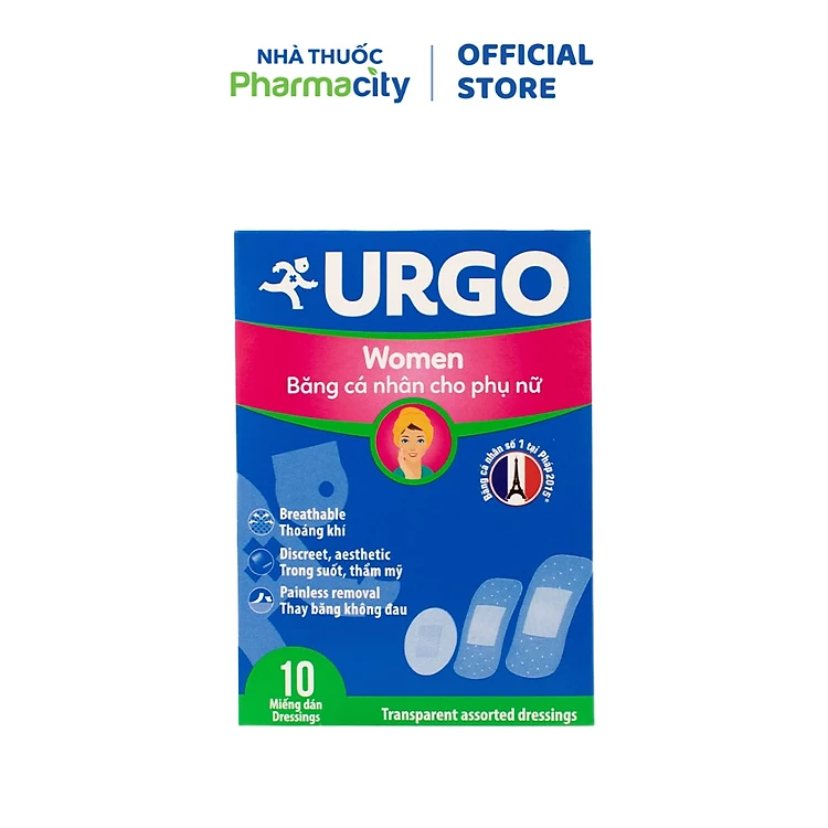 Băng cá nhân cho phụ nữ URGO Women bảo vệ vết thương nhỏ 3 size (Gói 10 miếng)