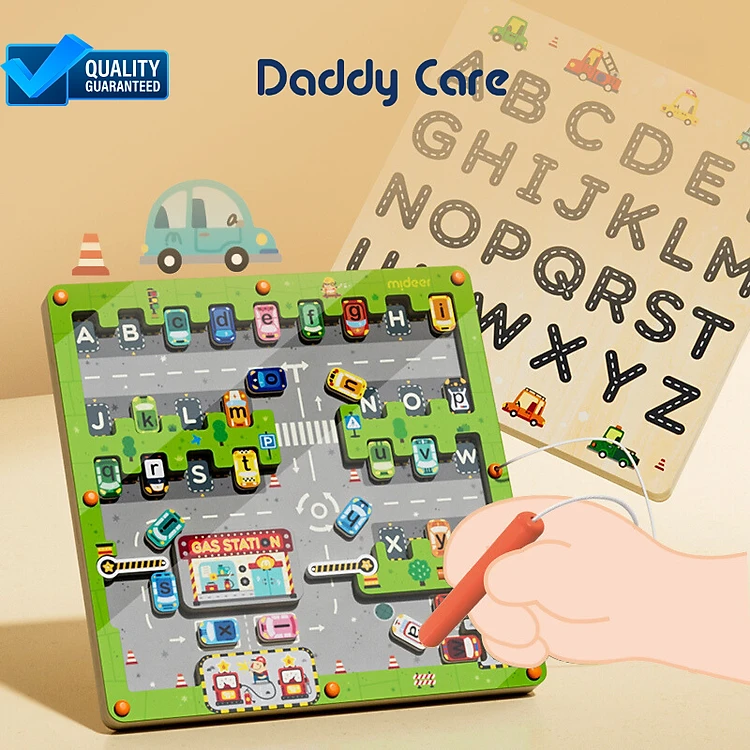 Bảng chữ cái nam châm, bảng gỗ mê cung Mideer Magnetic Maze- Parking Lot