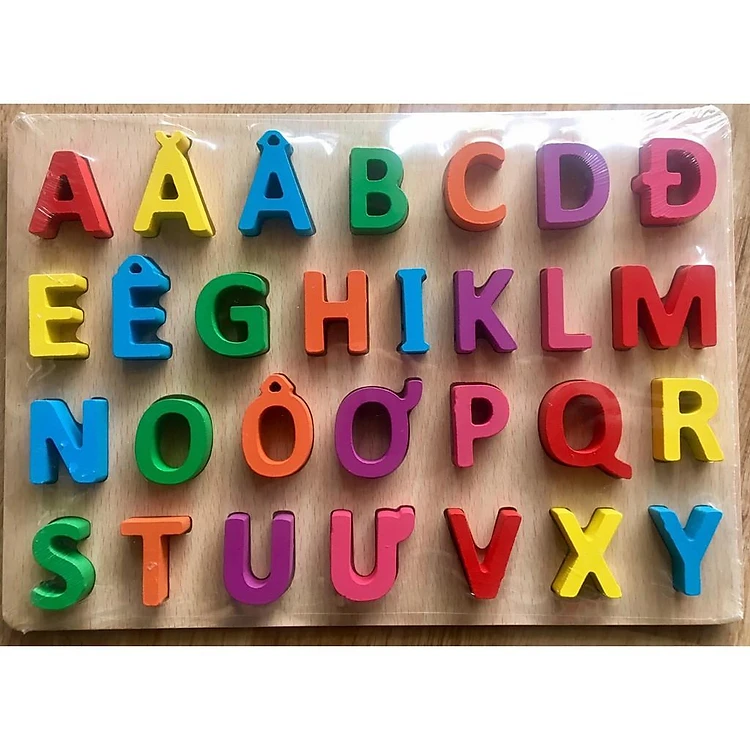 Bộ đồ chơi giúp bé làm quen với chữ cái, bé có thể lấy từng chữ cái để ghép thành các từ đơn, từ ghép.
