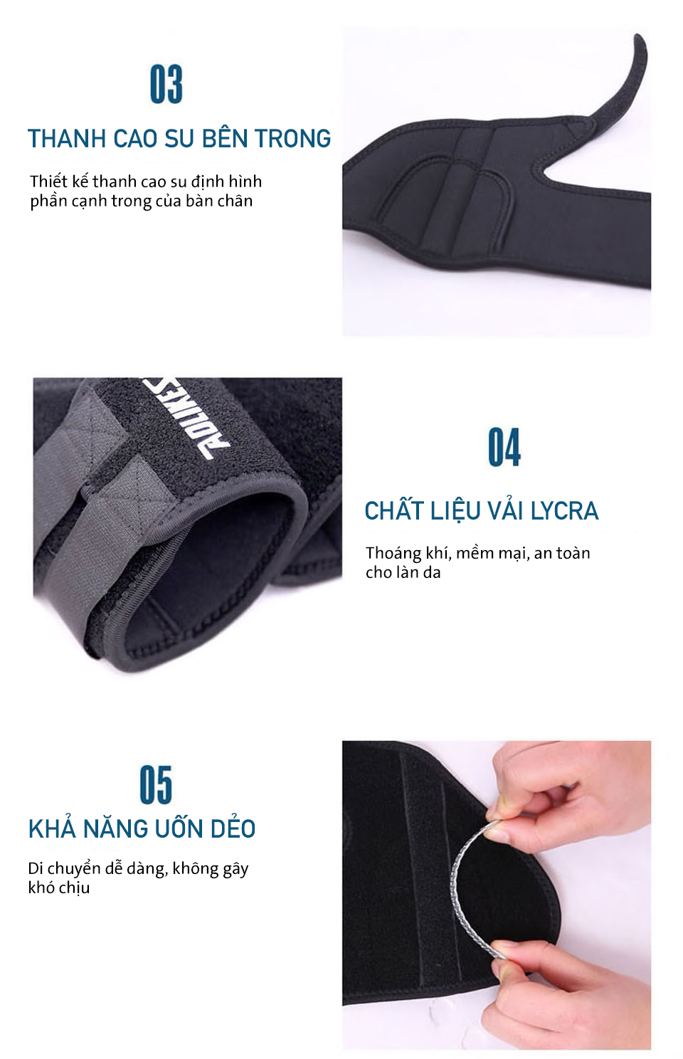 Phần cuốn ngón chân cái đặc biệt nối với thanh cao su => Điều chỉnh tư thế bàn chân đúng trục, hỗ trợ người bị gãy/ đau nhức/ lệch ngón chân cái