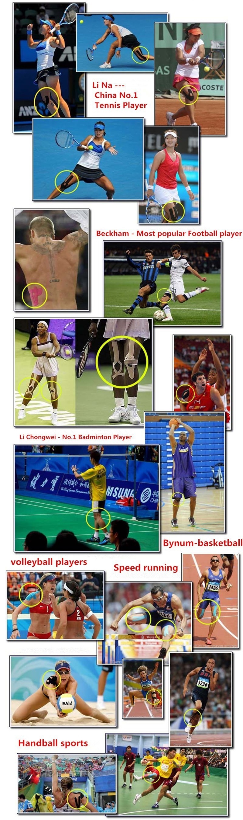 - Là sản phẩm đặc thù dành cho Vận động viên, người tập luyện các bộ môn thể thao khác nhau băng dán để trị liệu; hồi phục các tổn thương cơ bắp trên tứ chi của cơ thể. Chất liệu: Cotton.
