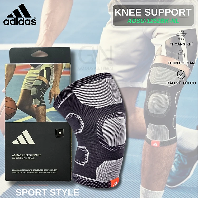 Băng Gối, Bó Gối Thể Thao Thun Co Giãn ADIDAS ADSU-1252BK-NL Knee Support (1 Cái) - Hàng Chính Hãng
