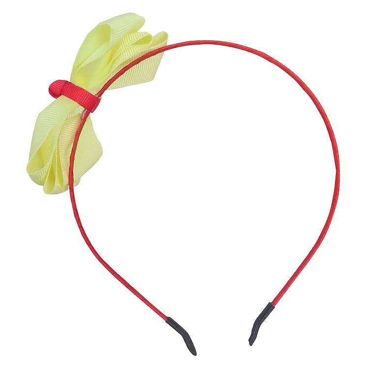 • Băng đô có thiết kế đơn giản, nơ vàng phối gọng đỏ đẹp mắt.