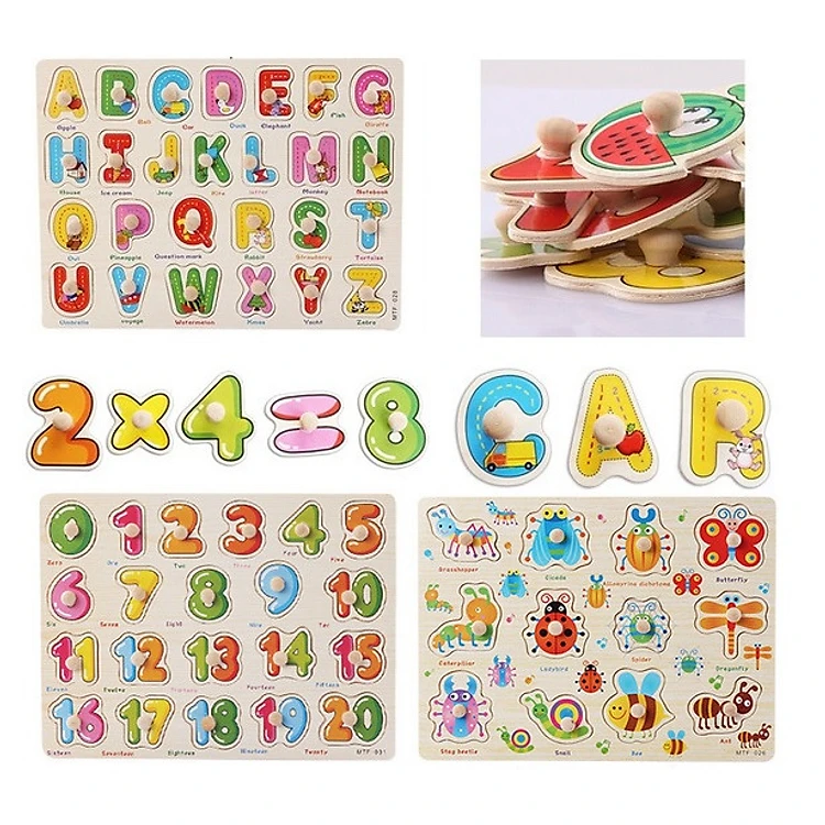 Bảng ghép hình côn trùng, chữ cái, chữ số núm gỗ(3 bảng)
