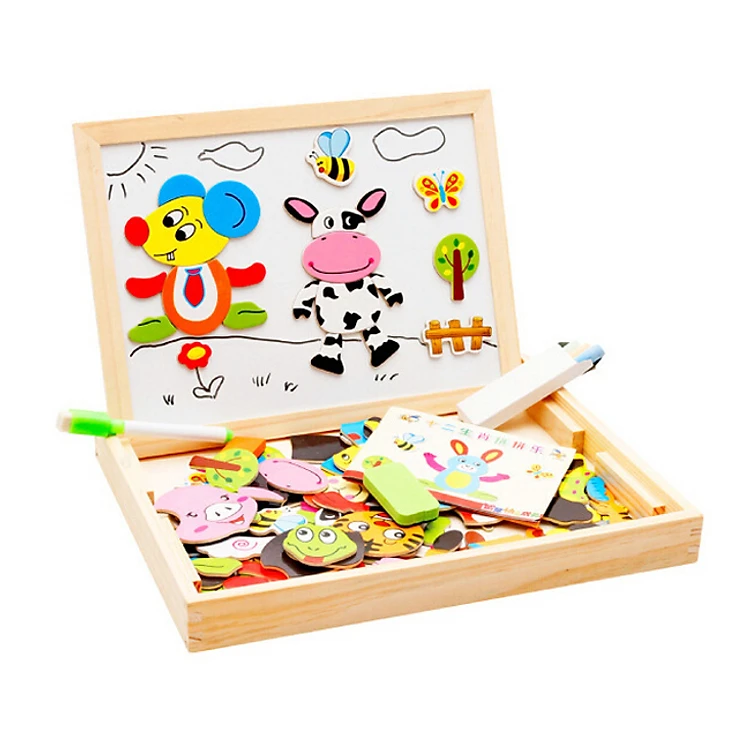 Chính vì vậy, Trò chơi Sáng Tạo sẽ mang đến cho quý phụ huynh một lựa chọn dành cho con yêu của bạn – Bảng Gỗ Nam Châm Ghép Hình 2 Mặt cho bé yêu thỏa sức ghép hình cũng như vẽ lên bức tranh yêu thích của con