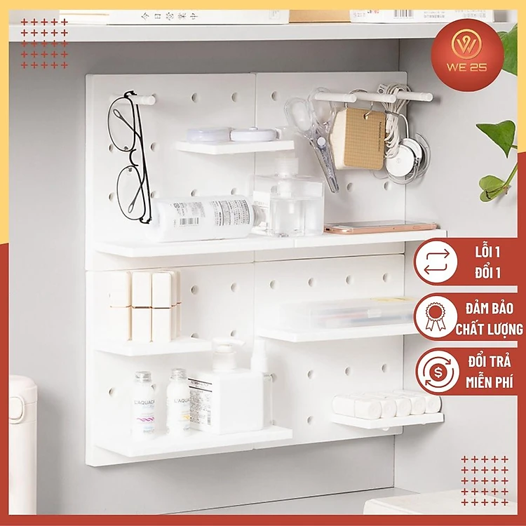 Bảng kệ đa năng Pegboard dán treo tường bằng nhựa đục lỗ dán treo dụng cụ và trang trí gọn gàng