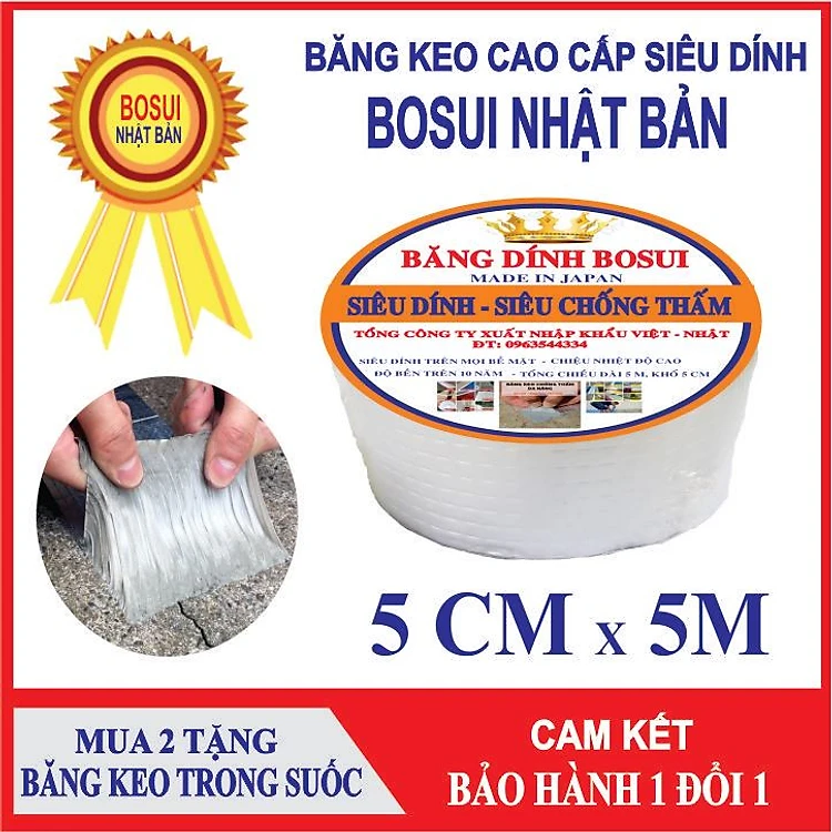 Băng keo chống thấm Bosui nhật bản siêu dính đa năng khổ 5cm x 5m