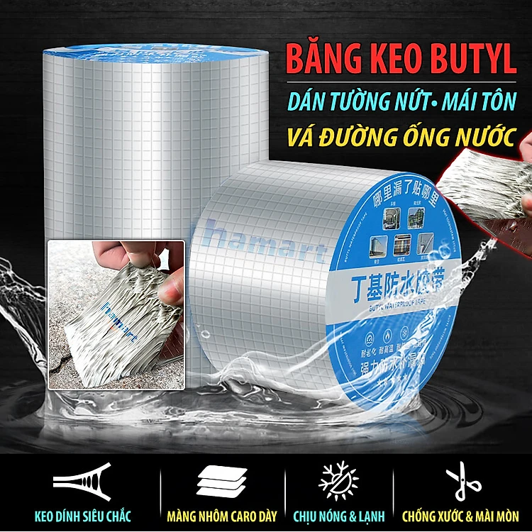 Băng Keo Chống Thấm Nước Butyl Dán Mái Tôn Chống Dột Vá Đường Ống Tường Sửa Chữa Nhà Cửa Siêu Dính