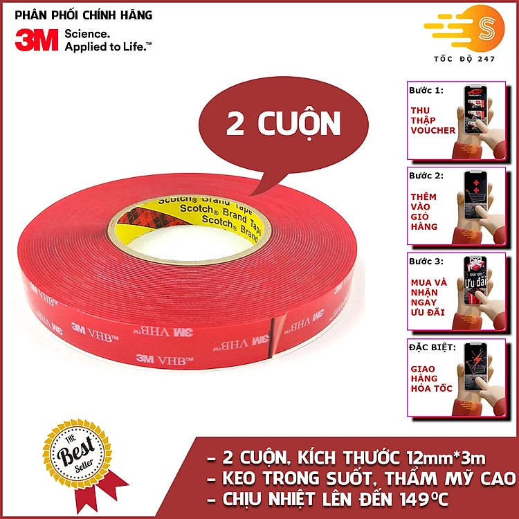 Băng keo cường lực trong suốt 3M dài 3m VHB 4910