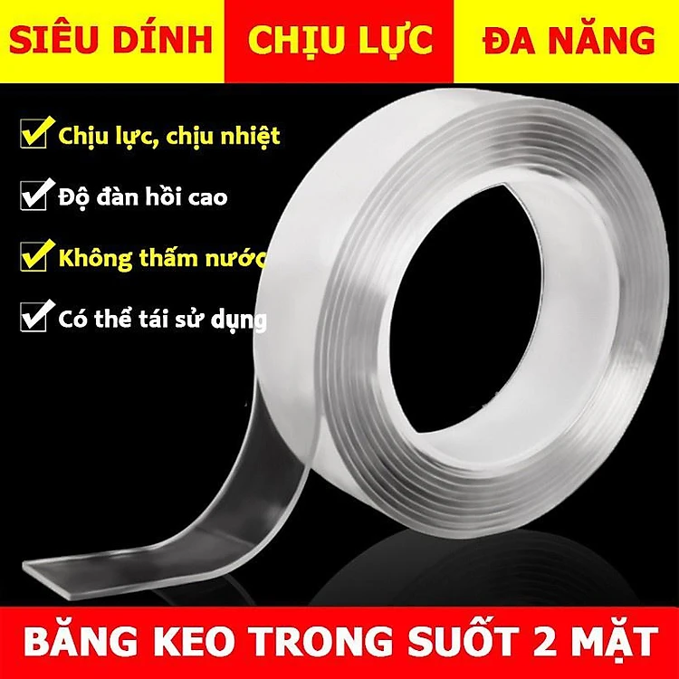 Băng Dính Nano Dán 2 Mặt Trong Suốt / Băng Keo 2 Mặt Đa Năng - Dán Tường/ Ổ Diện/ Cố Định Thảm/ Treo Tranh