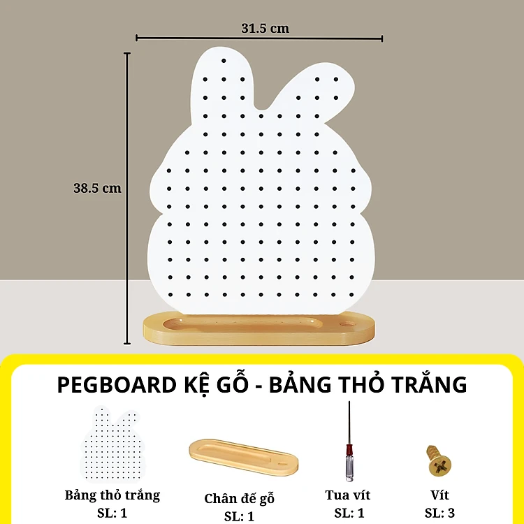 Bảng lỗ Pegboard kệ gỗ kim loại Dola Home, không khoan tường, trang trí bàn làm việc góc học tập
