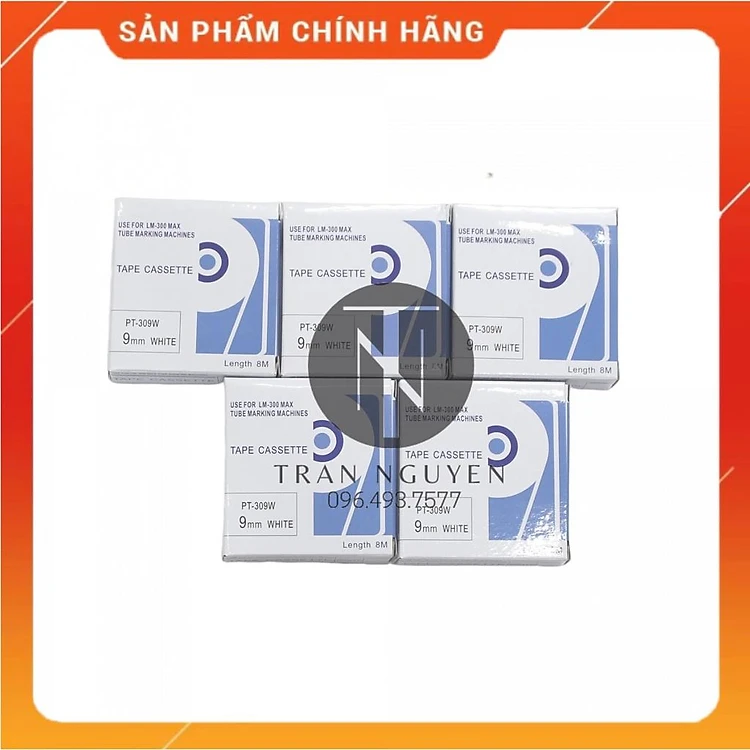 [Combo 5 cuộn] Băng nhãn in MAX PT-309W - Đen nền trắng 9mm x 8m - Hàng nhập khẩu