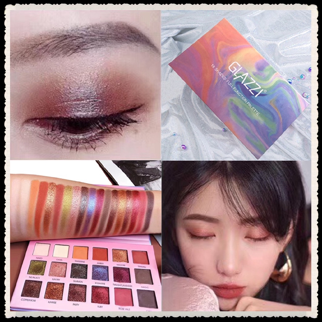 Bảng phấn mắt được làm từ 18 màu phấn mịn tông lì và nhũ.
