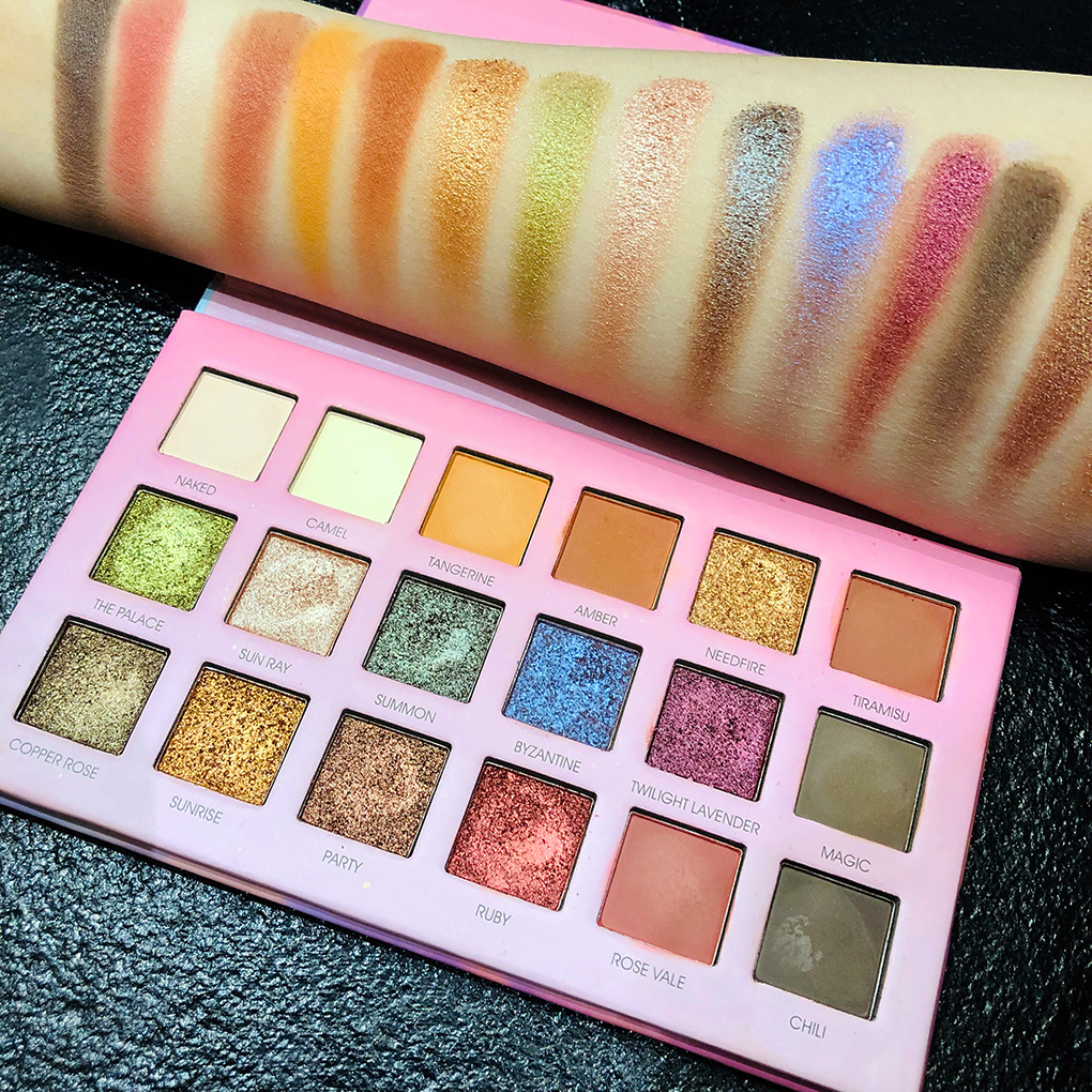 Bảng phấn mắt được làm từ 18 màu phấn mịn tông lì và nhũ.