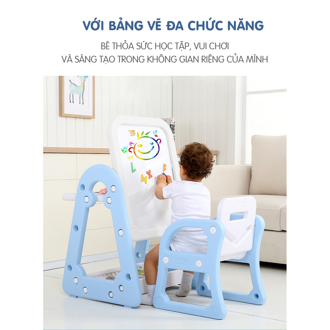 BÀN GHẾ ĐA CHỨC NĂNG 2IN1, CÓ THỂ LÀM BÀN, BẢNG VẼ CHO BÉ TỪ 1-8 TUỔI HOLLA, MẶT CHỐNG LÓA MỎI MẮT AN TOÀN CHO BÉ