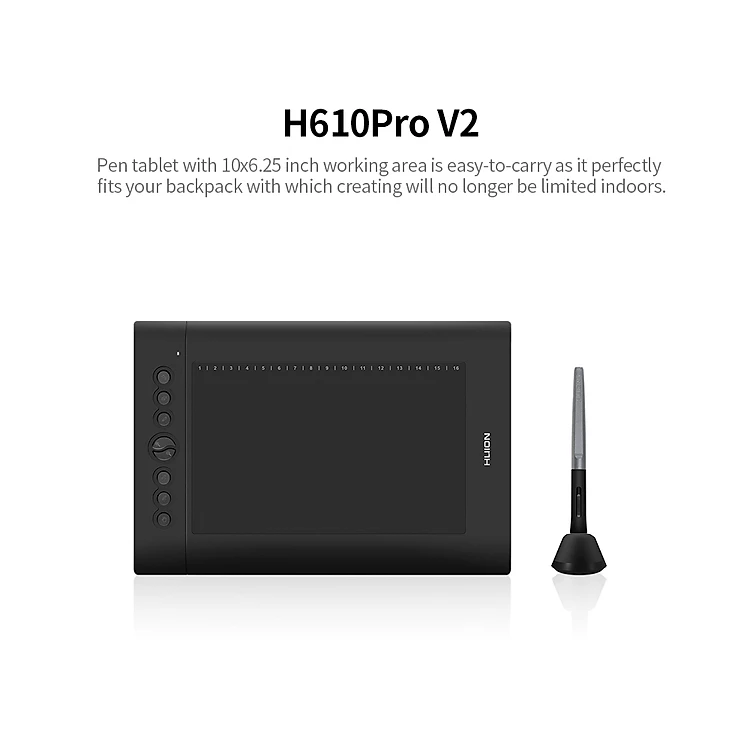Bảng Vẽ Đồ Họa Điện Tử HUION H610PRO V2 USB Kèm Bút Vẽ Có Pin Huion - Đen