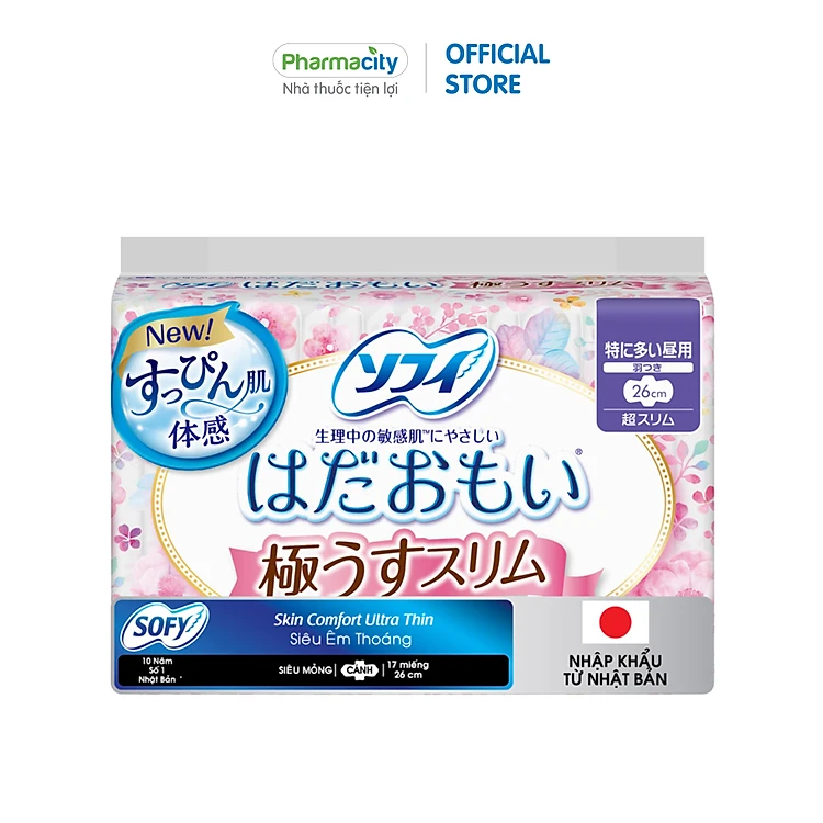 Băng vệ sinh siêu mỏng cánh Sofy Skin Comfort Ultra Thin 26cm (Gói 17 miếng)