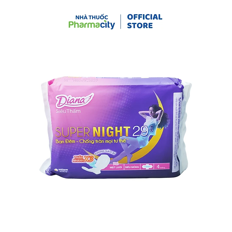 Băng vệ sinh ban đêm Diana Super Night 29cm (4 miếng/gói)