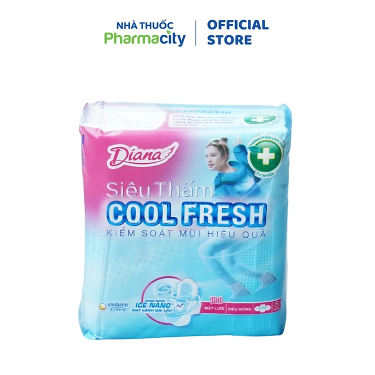 Băng vệ sinh Diana Sensi Cool Fresh Siêu thấm có cánh 23cm (8 miếng)