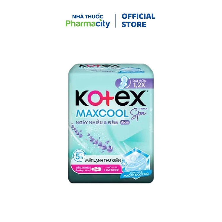 Băng vệ sinh Kotex Max Cool BVS cho ngày và đêm (Gói 6 miếng x 28cm)