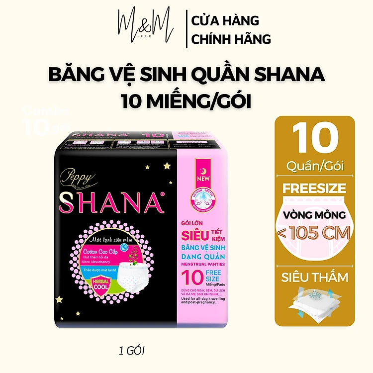 Băng vệ sinh Quần Peppy Shana ngày đêm, mềm mại, thấm hút tối đa, chống tràn GÓI LỚN SIÊU TIẾT KIỆM 10 quần/gói