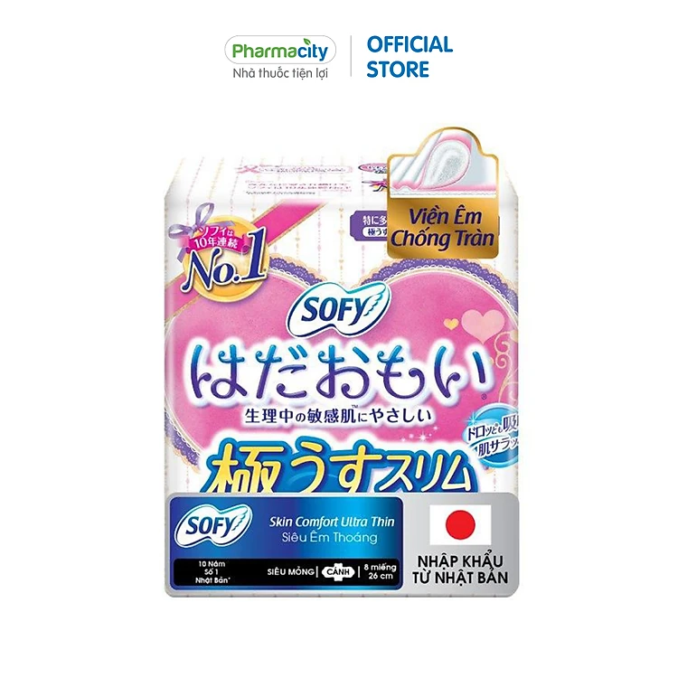 Băng vệ sinh siêu mỏng cánh Sofy Skin Comfort Ultra Thin 25cm (8 miếng/gói)
